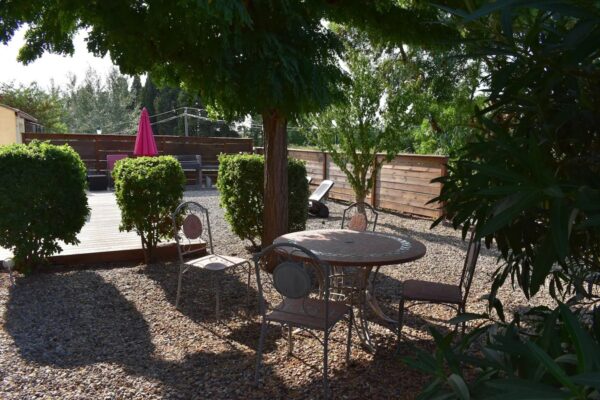 A large HEATED SWIMMING POOL 10m by 5m (32 x 16ft) with Roman steps for easy access and spacious surrounding terrace .(May – Oct) Both gîtes share the relaxing pool which is set in approx. 2 acre garden. 8 sun lounger’s and 3 reclining chairs are provided around the pool on the large decking and tiled surround, offering spacious and unobtrusive sunbathing area with extensive views of the hills and vineyards. Private off road parking in gated garden. Both gîtes have their own patios for BBQ and sunbathing. Ideal location for visiting the many attractions or just soaking up the sun. The Mediterranean Sea and beaches are 40min drive.